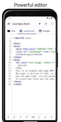It features a powerful editor with support for auto completion(only for html and css), syntax highlighting and indentation.